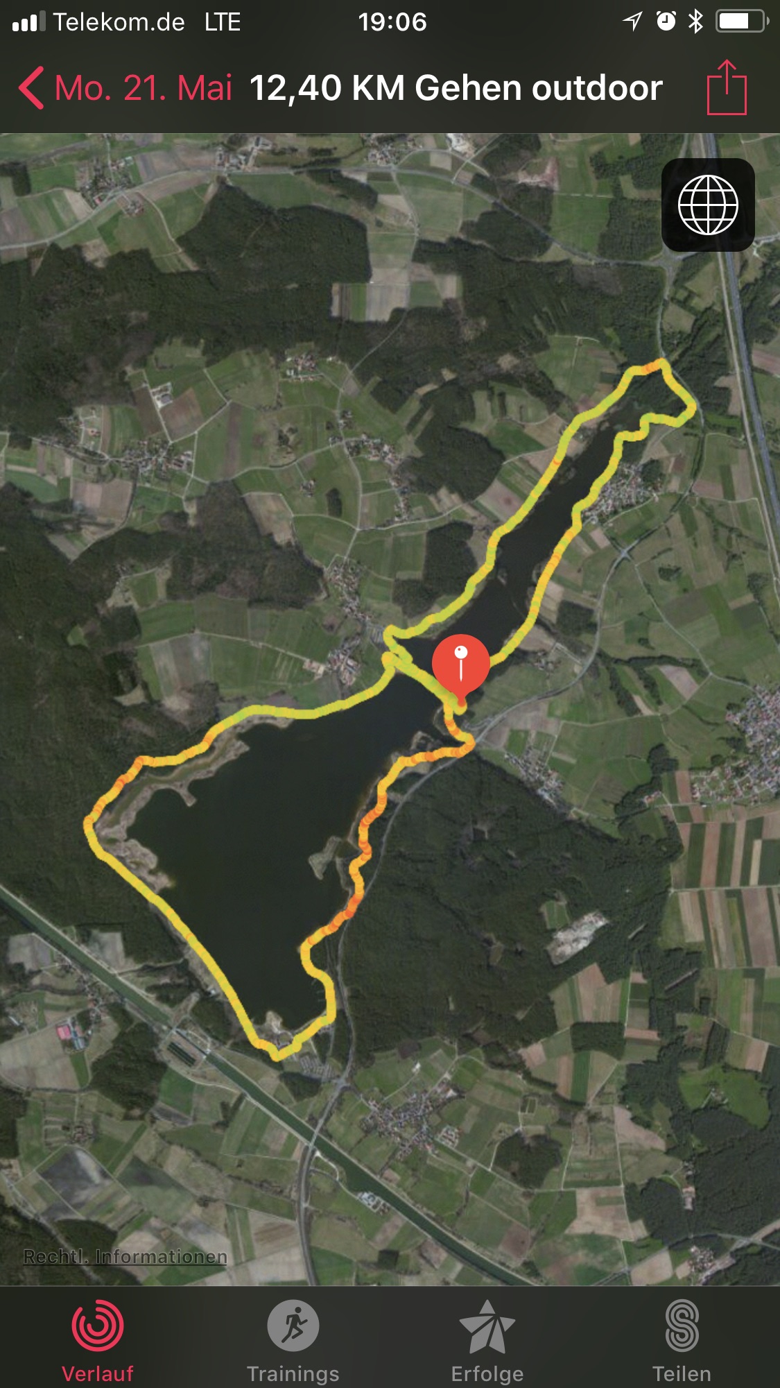 Ich freue mich gestern den Rothsee bezwungen zu haben. In den letzten Wochen bin ich immer mal die südliche oder nördliche Runde gewalkt, gestern dann als acht einmal ganz rum. Auf dem südlichen Stück hat mich meine Frau noch begleitet, sie ist noch nicht ganz so fit, deswegen ist die Zeit nebensächlich.